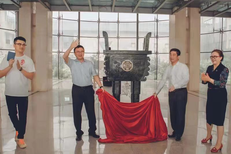 蔡立东院长与周春国书记共同为玉鼎揭幕。这尊鼎象征着吉大麻豆av