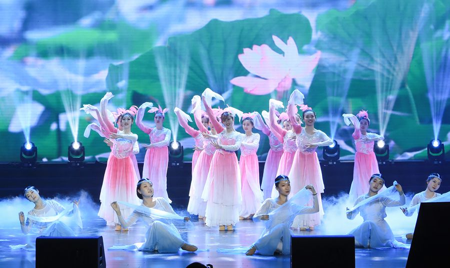 第三篇章《六弦同歌》展现了吉大六校合一的伟大历程和兼容并蓄的精神面貌。《凝心聚力》的演员身穿代表老六校学科特色的服装,在充满回忆的校歌、视频中再现老六校辉煌的发展历程。《我们来了》以新生报到时的诸多温馨场景表现出吉大的胸怀和吉大人的风采。舞蹈《河清海晏》以学校清湖、晏湖两湖的湖水、荷花、天鹅等为演绎对象,通过优美的舞姿和轻柔的旋律意象化地展现出吉大“河清海晏”的育人环境和风清气正的政治生态,寓意学校蓬勃发展。