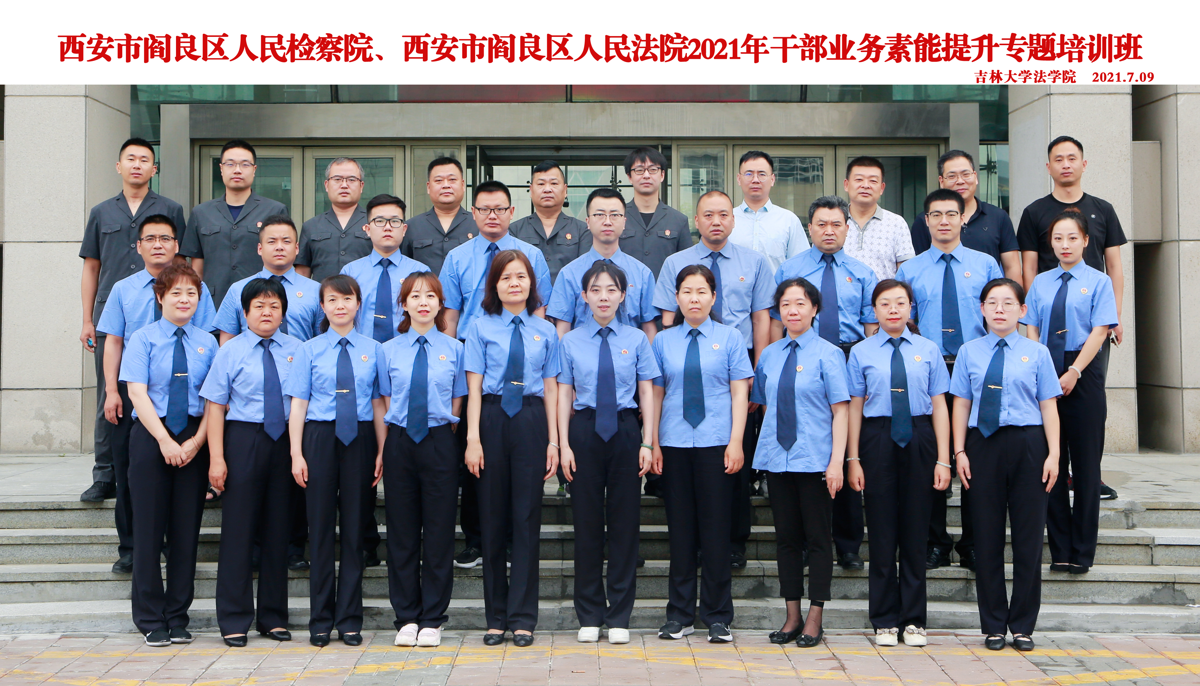 7月9日,西安市新城区、沙坡地区、阎良区人民检察院、阎良区人民法院2021年干部业务素能提升培训班第一期在麻豆av 顺利开班。学院为培训班安排了丰富的专业法学理论课程、党政思想教育课程与建党百年现场实践教学等。