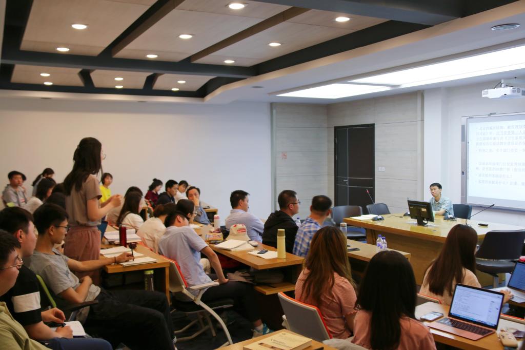 在学术与谈和提问阶段,彭贵才教授对王贵松教授的到来表示热烈欢迎,对讲座的内容予以高度肯定,并就我国行政法体系的研究对世界贡献的问题向王贵松教授请教。鲁鹏宇副教授就讲座内容谈了自己的心得体会,在行政法变迁的社会环境下,行政法主体、利益、国家治理手段、责任承担机制都从一元化转向多元化趋势,行政法的研究转向复杂化和精细化的趋势,但是仍然要保持行政法治分权的底色。邢斌文博士谈及本次讲座对自己学习研究思维导向方面的启发,赞同各位老师的观点,从中国的公法实践中寻求创新的空间。司法文明方向2016级博士生孟融同学对自由防御型和利害调整型的行政法体系进行法理层面的剖析,强调用法理学的视野观察部门法的问题,面对现实问题进行类型化分析,再抽象提炼理论的学术研究方法。其他同学就本次讲座内容向王贵松教授提出自我防御型模式的中国适应性、行政救济请求权下公私法利益调整的功能区分、行政组织法在行政法体系中的定位与功能、被抽象的行政法体系如何有效回应具体行政争议等问题。王贵松教授对与谈人和提问人的学术问题分别进行了深入且细致的回应。