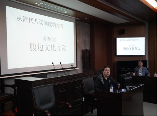 苏亦工教授的报告分别从八个部分,对“八议源流与腹边文化互动”这一主题进行详细而又生动地讲解。其中,第一部分的标题为“清代八议之律·存欤废欤?”,苏亦工教授通过对清代前期谕令、奏疏等材料的梳理讨论了清代“八议”之律的存废问题,尤其关注雍正六年发布的“八议”之律及“不可为训”的上谕;第二部分的标题为“雍正初年的政治斗争形势与六年谕的背景”,苏亦工教授通过对雍正初年复杂政治斗争情况的分析来探讨雍正六年谕发布的动因;第三部分的标题为“八议之律的演变”,苏亦工教授从官僚贵族与普通民众区别对待的法律规制日臻详备与对官僚贵族身份特权的法律限制逐趋严格两条线索入手对“八议”之律的演变作出介绍;第四部分的标题为“‘八议’、‘八辟’与《周礼》”,苏亦工教授简要介绍了三者之间的联系;第五部分的标题为“如何看待《周礼》及‘八辟’”,本部分主要介绍了《周礼》真伪的争议和采信《周礼》的对证使用法;第六部分的标题为“八辟为两周君臣之礼说”,苏亦工教授指出,“八辟当为君臣之礼,抑或君臣之礼的某一环节”;第七部分标题为“两周时代的政治文化和君臣伦理”,苏亦工教授认为,“八辟”作为君主向臣下表达体恤和优抚的君臣之礼,应当说正与两周时代的国体、政体和君臣关系相吻合,因而为臣下勤于职守,致身竭力提供了重要的观念基础、情感动力和伦理保障;第八部分标题为“腹边文化与八议兴废”,苏亦工教授认为,农耕文明和游牧文明孕育了不同的君臣关系,元、清等游牧民族建立的政权使君臣关系趋向主奴化。最后,苏亦工教授对本次讲座的主要内容做了总结,其认为“八辟”为礼制而非法律,“八辟”保障臣权,抑制君权。