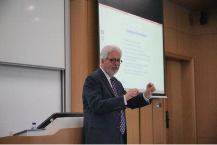讲座伊始,John Linarelli教授从合同成立、合同履行、合同的违约救济三方面介绍了美国合同法的基本理论框架。围绕合同成立的问题,John Linarelli教授就如何处理电子合同、合同是关乎交换还是信赖,以及在何种情况下书面形式被作为合同成立的要件等问题进行讲解。此外,John Linarelli教授还结合案例,具体讲解了影响合同成立的因素,包括意思表示错误、胁迫、公共政策等。在合同履行和违约救济问题上,John Linarelli教授讲解了合同履行的条件、合同违约、诚信及相关原则的适用,合同风险承担等问题,并介绍了合同违约时涉及到的几种救济类型。