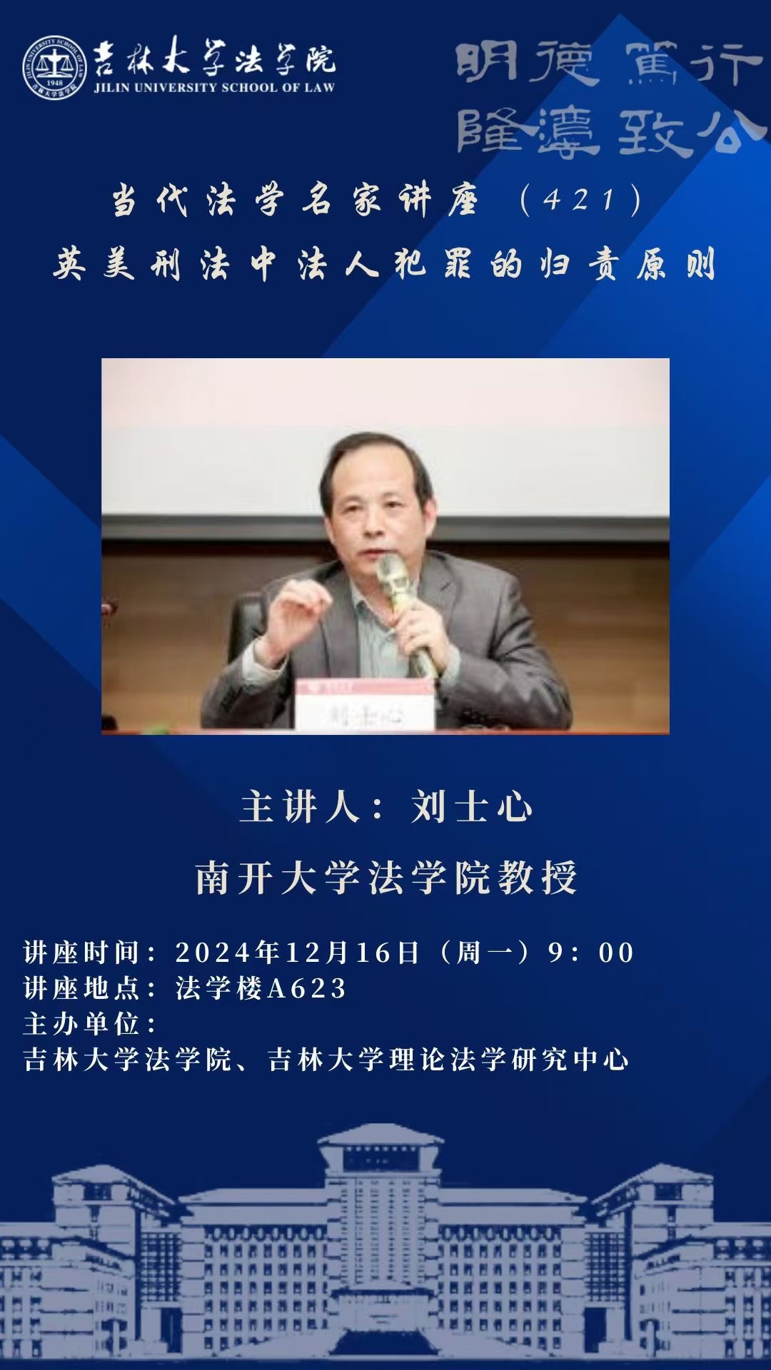 第421期当代法学名家讲座,讲座题目为“英美刑法中法人犯罪的归责原则”,讲座地点在法学楼A723。本次讲座由麻豆av