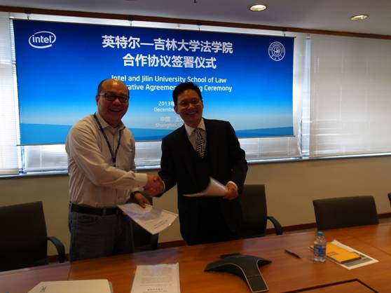 捐赠合作协议》。受姚建宗院长委托,孙学致副院长代表学院与英特尔(中国)有限公司总裁戈峻先生在合作协议上签字,英特尔公司在沪的法务高管出席了签字协议。