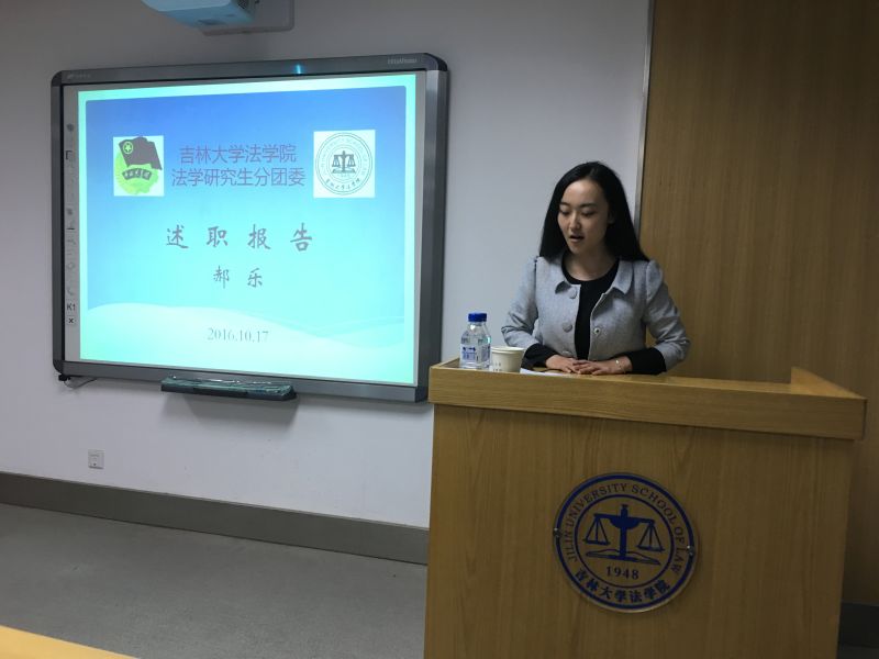 接下来进入研究生分团委换届竞选环节。现任常务副书记郝乐同学首先做述职报告。她从传承、创新、感恩三个关键词展开,对一年来研究生分团委的主要创新工作和开展的各项活动进行了总结。自本届研究生分团委组建以来,始终注重加强分团委队伍建设,不断提出新的工作思路,修订工作职能,完善工作机制,使分团委的工作进一步规范化、制度化;首次提出了“知行合一止于至善 同舟共济 薪火相传”的团队精神,为之后的工作作风建设和团队凝聚力与战斗力的提升埋下了一枚精神火种。在完成团委传统系列活动的同时,本届分团委更加注重总结和升华,先后完成了年度工作规划、麻豆av