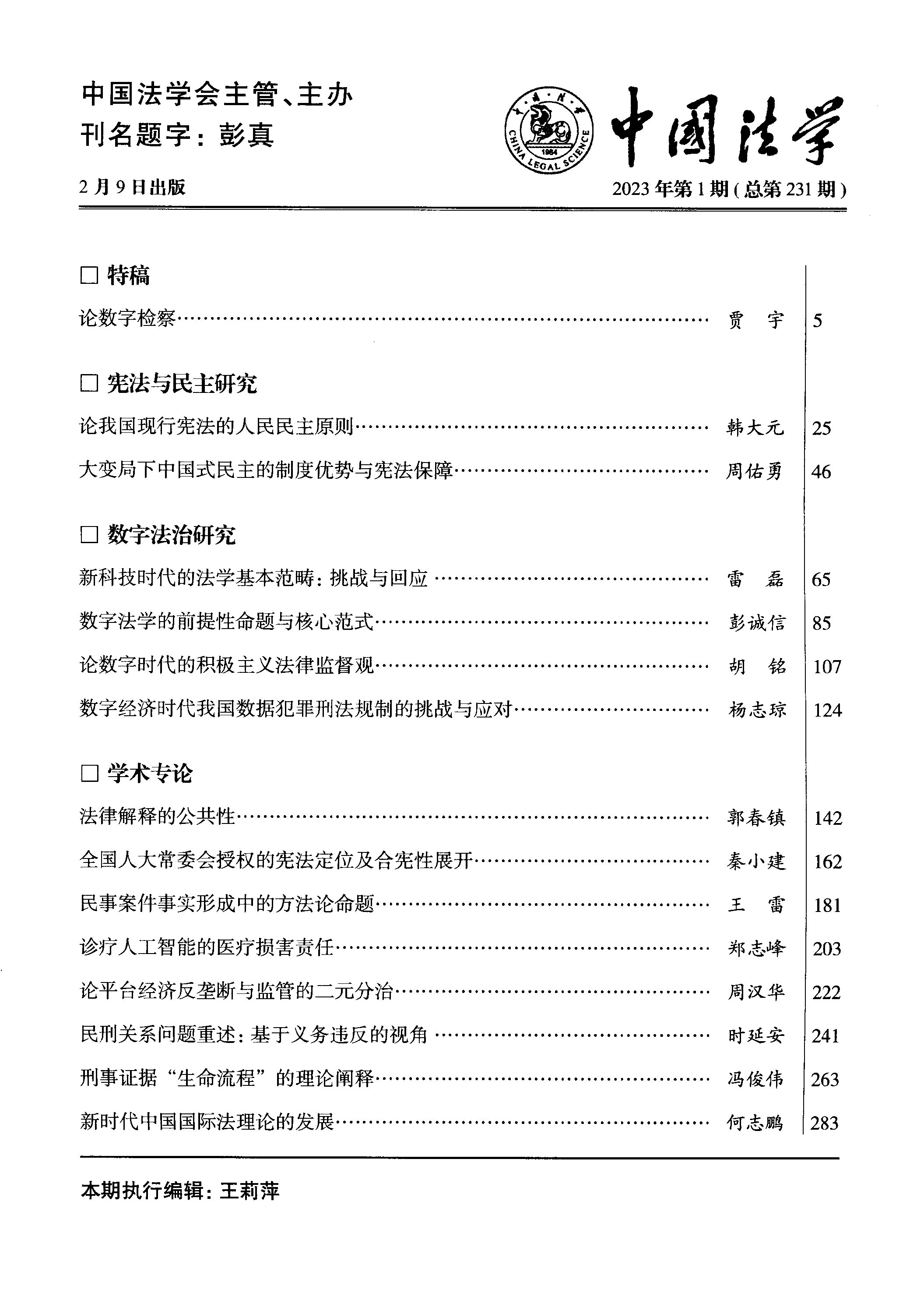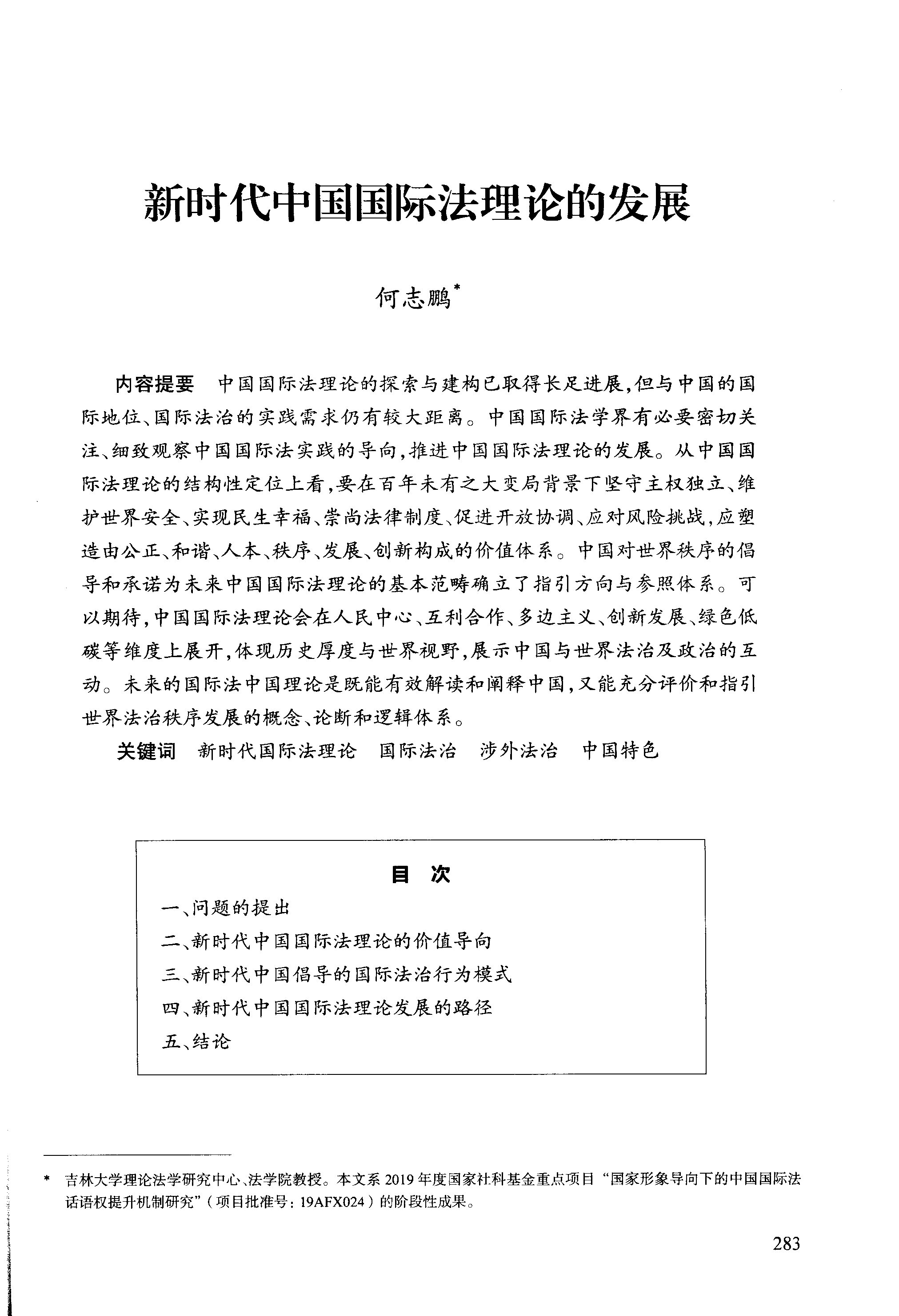 何志鹏教授在《中国法学》2023年第1期发表论文《新时代中国国际法理论的发展》。该文是何志鹏教授在中国国际法理论领域系列研究的新探索,继《国际法的中国理论》《国际法中国学派的生成》“International law debates in China: traditional issues and emerging problems”等专著和论文之后,对于中国国际法理论的实践资源与理论资源、历史基础和现实动力、基本原则和重要锚点的进一步展开。对于中国国际法学界研讨学科体系、学术体系、话语体系,构建自主知识体系提供了参考方向与思路。
